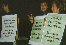 peaceful resolution ever being reached. What can be done - unfortunately, at this point in time, apart from protesting to the NZ government for their support for the air strikes, and to the NATO governments; supporting human rights, women's and peace groups which you are in touch with in the region; and supporting those who may be called up (this includes Serb reservists living in NZ) and chose not to go, there is not a lot which can be done. The things which may have prevented the situation reaching this point - a total arms embargo; the deployment of the full OSCE peace monitor contingent as promised last year (only half of them ever got there, in a very dispersed fashion); putting adequate resources, both human and financial, into peacefully resolving this conflict - were not a priority for NATO governments. The old slogan 'those who prepare for war will get it' is foremost in our minds today - perhaps if the NATO governments had prepared for peace, then that is what they would have now. Did you know that the OSCE (Organisation for Security and Co-operation in Europe) has 54 members states, NATO has 19 ? NATO's budget is more than one thousand times larger than that of the OSCE." Since that first alert, written in a state of disbelief, the situation has inevitably gotten worse. TV news reports are full of pictures of fleeing Kosovars, tales of tragedies and atrocities abound - all of it, we are told, the responsibility of Yugoslav president Milosevic. It is difficult to imagine the plight of the people who are not pictured on the news - those whose homes have been destroyed, whose loved ones have been killed or maimed by the bombing. Do they have electricity, access to clean water, adequate food and medical supplies? We can only listen for clues as to what is happening to the people remaining in Yugoslavia - the NATO spokesman proudly announcing that only 12 (? was it) of more than 8,000 bombs have missed their targets, what does it mean to have that number of bombs dropped on your country ? The news reports of nightly bombing raids involving 600 warplanes ... Some of the 'damage' estimates we have received are: 1,500 dead and 5,500 seriously injured people; 700,000 jobless workers after 52 industrial facilities were destroyed; at least 250 hectares of forests burned to the ground; an ecological and environmental catastrophe of as yet unknown proportions caused by the bombing of oil refineries and chemical manufacturing plants, and from the use (now confirmed) of depleted uranium ammunition. When trying to picture the unreported stories, our minds turn to the consequences of the bombing of Iraq during the Gulf war. The convener of the post-war United Nations mission there described it thus : " nothing that we had seen or read had quite prepared us for the particular form of devastation which has now befallen [Iraq]. The recent conflict has wrought near-apocalyptic results upon the economic infrastructure of what had been, until January 1991, a rather highly urbanised and mechanised society. Now, most means of modern life support have been destroyed or rendered tenuous. Iraq has, for some time to come, been relegated to a pre-industrial age" ... Will similar words be used to describe Yugoslavia when the bombing stops ? There is talk of sending all the refugees back, what will they be going back to - a place where "most means of modern life support have been destroyed or rendered tenuous" ? Do these make any sense to you ... "The Parties undertake, as set forth in the Charter of the United Nations, to settle